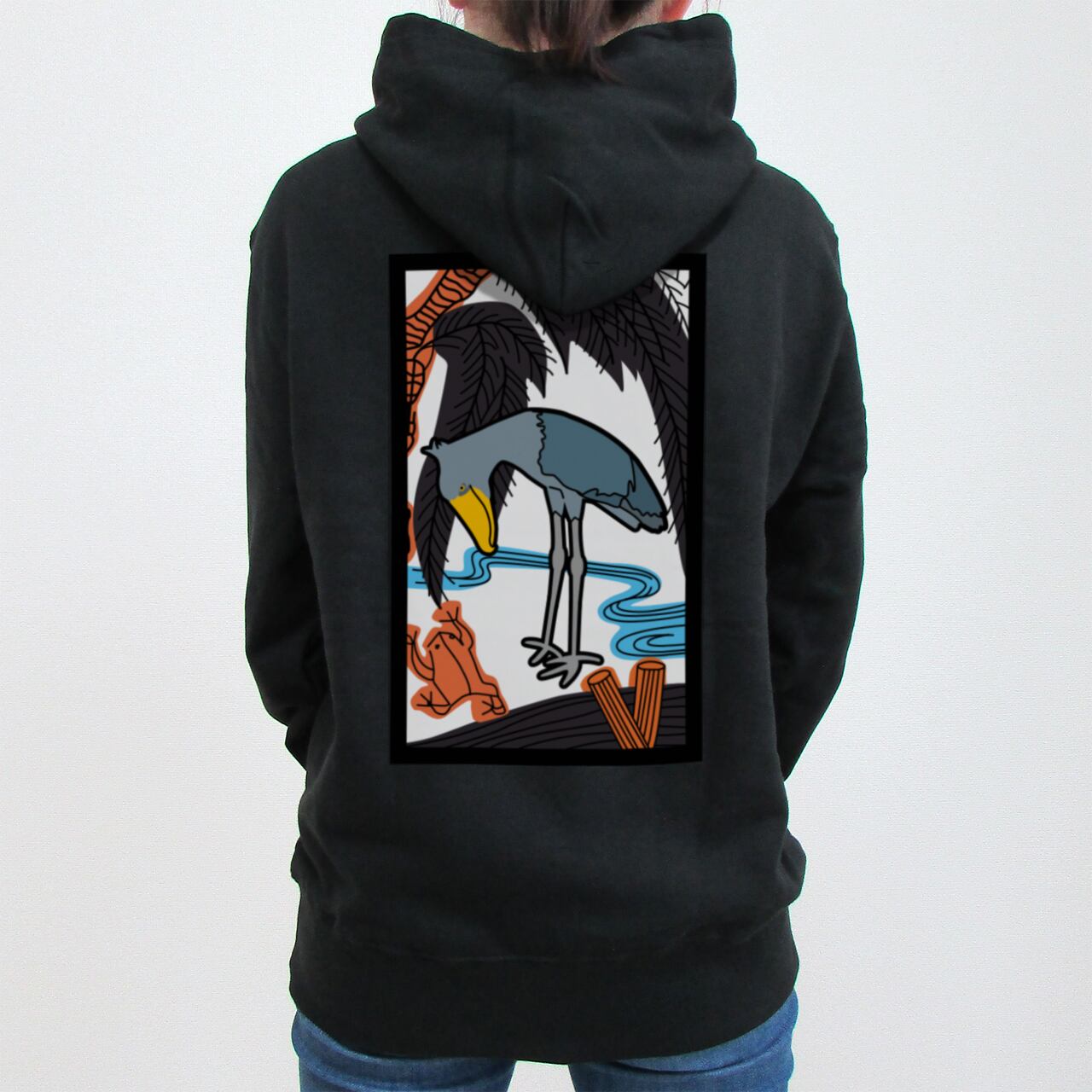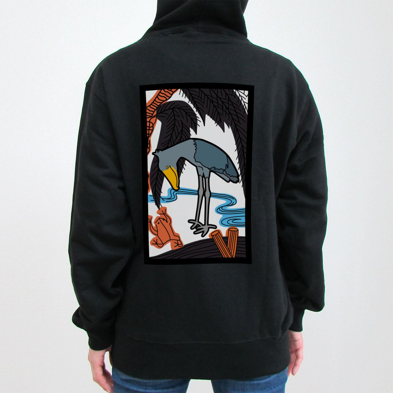 五鸛(GOKO) 柳にハシビロコウ|カラープリントパーカー【全3色/送料無料/受注生産】